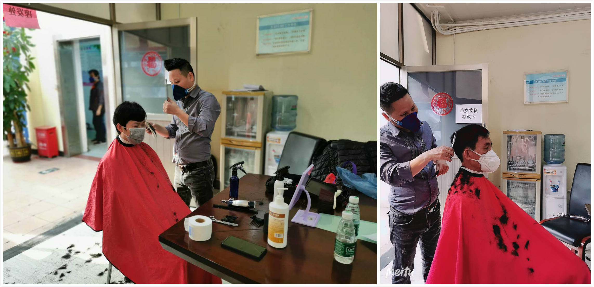 富山園區(qū)和重慶園區(qū)也馬上響應(yīng)。富山園區(qū)的愛心理發(fā)屋當(dāng)天下午就正式成立,重慶園區(qū)也計(jì)劃利用周末的時(shí)間開展免費(fèi)理發(fā)活動(dòng),值得一提的是,這兩個(gè)園區(qū)的理發(fā)師是來自我們產(chǎn)線的一線員工,他們?cè)诔蔀榉秸膯T工之前曾經(jīng)是專業(yè)的理發(fā)師,在此次活動(dòng)中他們利用業(yè)余時(shí)間為同事們進(jìn)行愛心免費(fèi)理發(fā),發(fā)揚(yáng)大愛精神,為奮斗在復(fù)工復(fù)產(chǎn)一線的員工做好后勤保障工作。