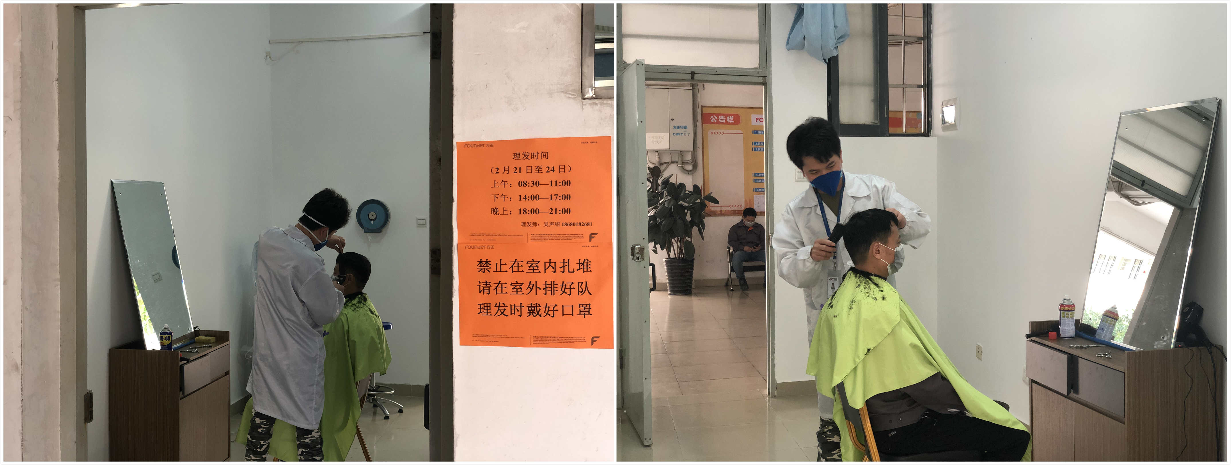 考慮到目前仍處于疫情防控的關(guān)鍵階段,我們的理發(fā)師傅需要經(jīng)過測(cè)量體溫、查詢行動(dòng)軌跡、戴口罩、簽署承諾書等一系列消殺防疫工作才能進(jìn)入園區(qū);同時(shí)為了避免人群聚集,各地園區(qū)會(huì)根據(jù)人流情況,組織員工錯(cuò)峰前往指定地點(diǎn)理發(fā)。